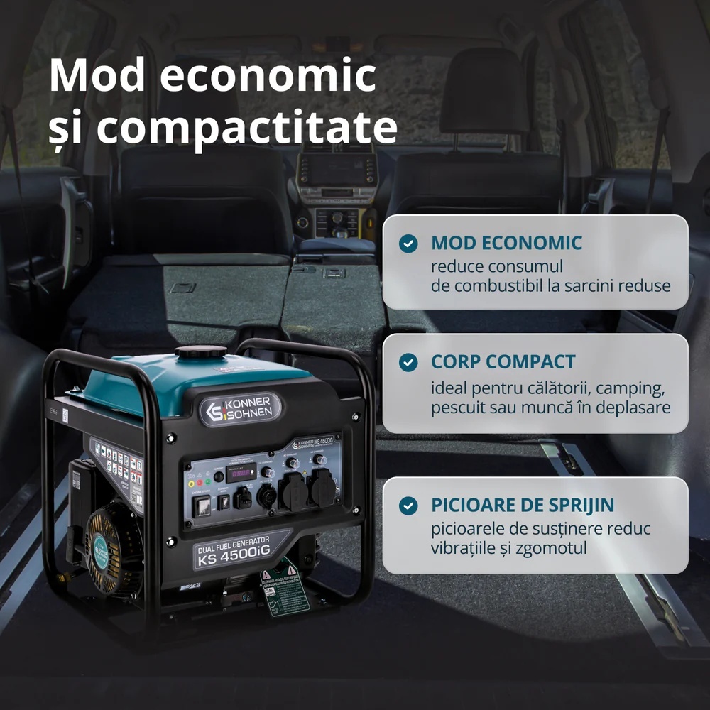 Generator de curent 4.5 kW inverter - HIBRID (GPL + benzina) - insonorizat - Konner & Sohnen - KS-4500iG din gama de generatoare de curent portabile