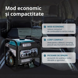 Datorită dimensiunilor reduse, generatorul este ușor de transportat oriunde. Ideal pentru camping, pescuit sau alte activități în aer liber.