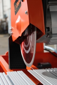 Cap de taiere mobil. Motorul este fixat pe o grinda pliabila pentru taieri la 45 de grade.