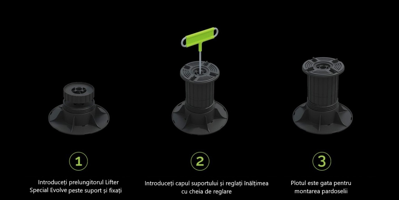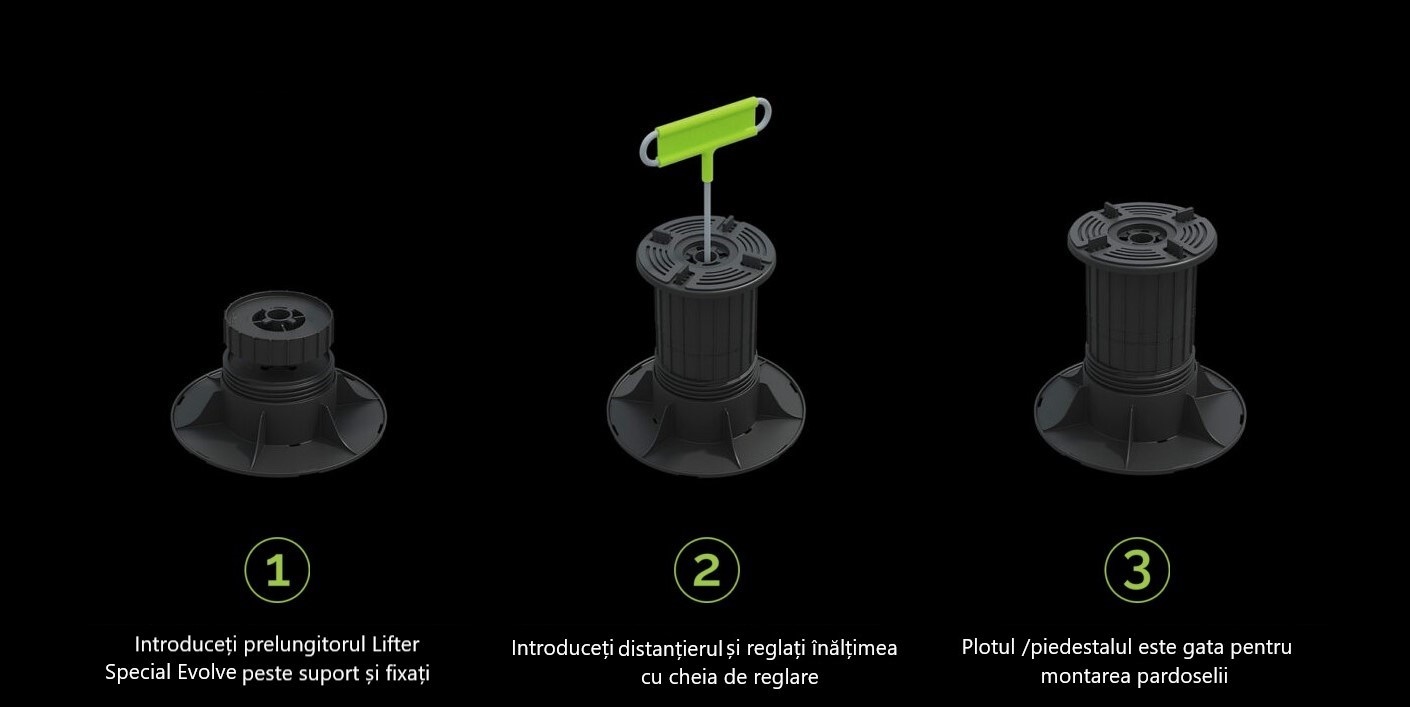 - Italprofili Lifter Special Evolve este un modul inovator de extensie conceput pentru suporții reglabili de pardosire utilizați la pardoselile flotante, oferind versatilitate maximă pe șantier.