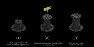 Înălțimea rezultată între placă și pardoseală este marită cu 10mm în plus de suporții aleși.