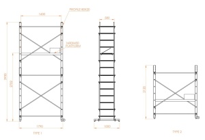 Schela aluminiu mobila 2x2(m), inaltime 4m, platforma 1,6x0,45(m), max. 150kg - CNO-SME-ADDY5M