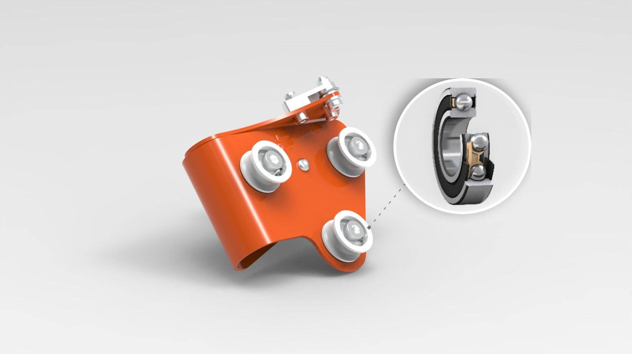 Cărucior: Un cărucior robust și confortabil de utilizat, echipat cu trei scripeți glisanți din nailon și trei rulmenți cu bile pentru o mișcare lină și precisă de-a lungul șinei.